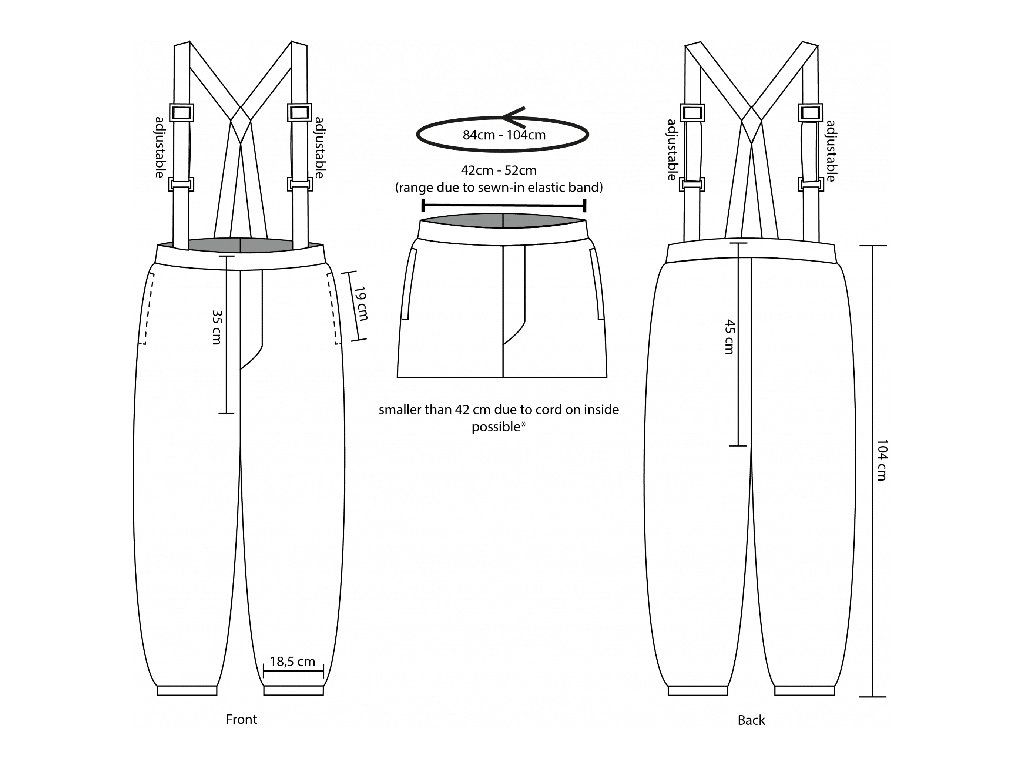 Nastavitelný pas:Stažení pomocí šňůrky na velikost M–XL, vhodné pro obvod pasu až 104 cm.