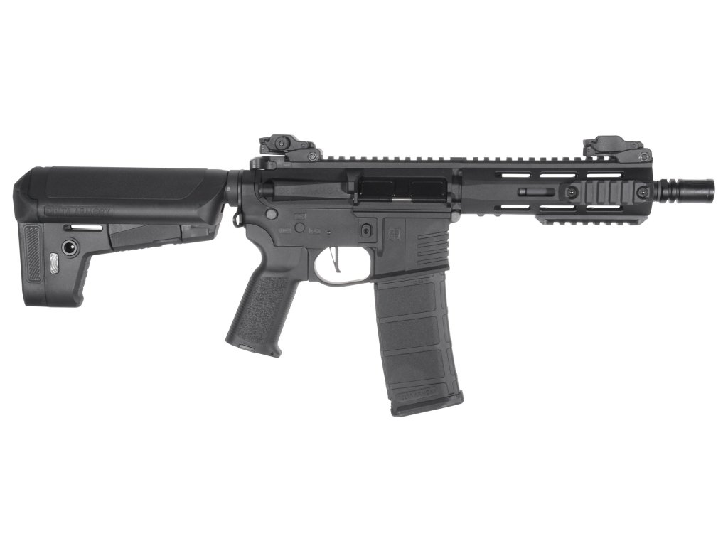 - Mířidla a hlaveň: Zbraň je vybavena nastavitelnými zadními a předními mířidly namontovanými na liště RIS a hlavní se 14mm levotočivým závitem pro montáž tlumiče nebo jiného příslušenství.