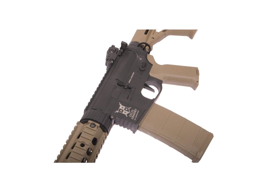 Eagle série je nejnovějším přírůstkem do nabídky od renomované značky Delta Armory. Eagle série reaguje na rostoucí poptávku po elektronických spouštích přímo ve zbraních, která pomalu nahrazují klasické mechanické spouštové kontakty. Eagle série přináší novou ETU opticko-magnetickou procesorovou jednotku , která zajistí rychlou odezvu spouště a zároveň je zbraň připravena k použití s 11,1 LiPo bateriemi. (Baterie se vkládá do tubusu pažby, konkrétně doporučujeme Delta Armory 11,1V/1100mAh). Samozřejmostí je Deans-T konektor, který nahradil klasický Tamiya konektor.