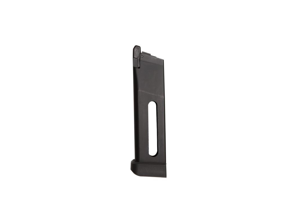 Kovový zásobník je určen pro airsoftové pistole ASG STI 2011 Combat Master a ASG STI Pit Viper. Kapacitou 24 ran a pohonem na 12g CO2 bombičky poskytuje maximální výkon a spolehlivost při každém výstřelu.Zásobník je vybaven rozšířenou šachtou pro snadné plnění plničkou – stačí stáhnout jezdec až dolů a naplnit zásobník kuličkami. Díky realistickým rozměrům je kompatibilní s pistolovými sumkami.
