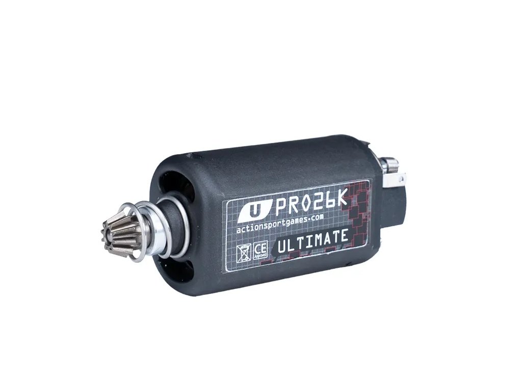 Motor PRO26K je součástí nové série od ASG, která nabízí vylepšenou konstrukci oproti základním motorům, tepelně odolnější magnety a uhlíky s delší životností. Díky tomu je skvělou volbou jak pro zbraně v základu, které mají slabé a líné základní motory, tak i pro upgrade sestavy stavěné na dlouhou životnost (orientačně M110-M130, kadence 12-20 BB/s). Pastorek je vyroben z oceli pomocí CNC obrábění a celý motor je postavený na precizním silikonovém ocelovém jádru.