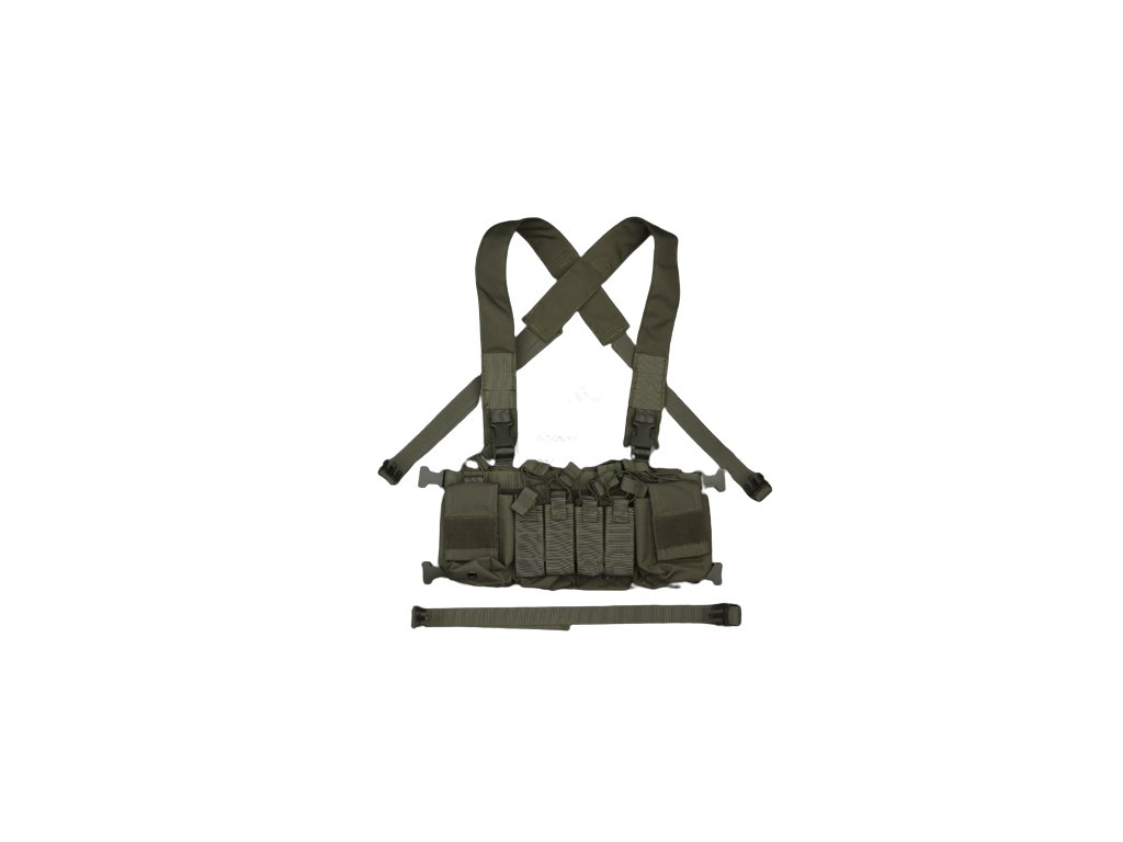Vesta je vyrobena z nylonu. Šířku vesty lze nastavit pomocí dvou popruhů na každé straně a dvou popruhů vpředu. Na vestě jsou čtyři pouzdra na zásobníky M4 a dvě pouzdra na vysílačku, svítilnu nebo jiné příslušenství. Univerzální velikost.