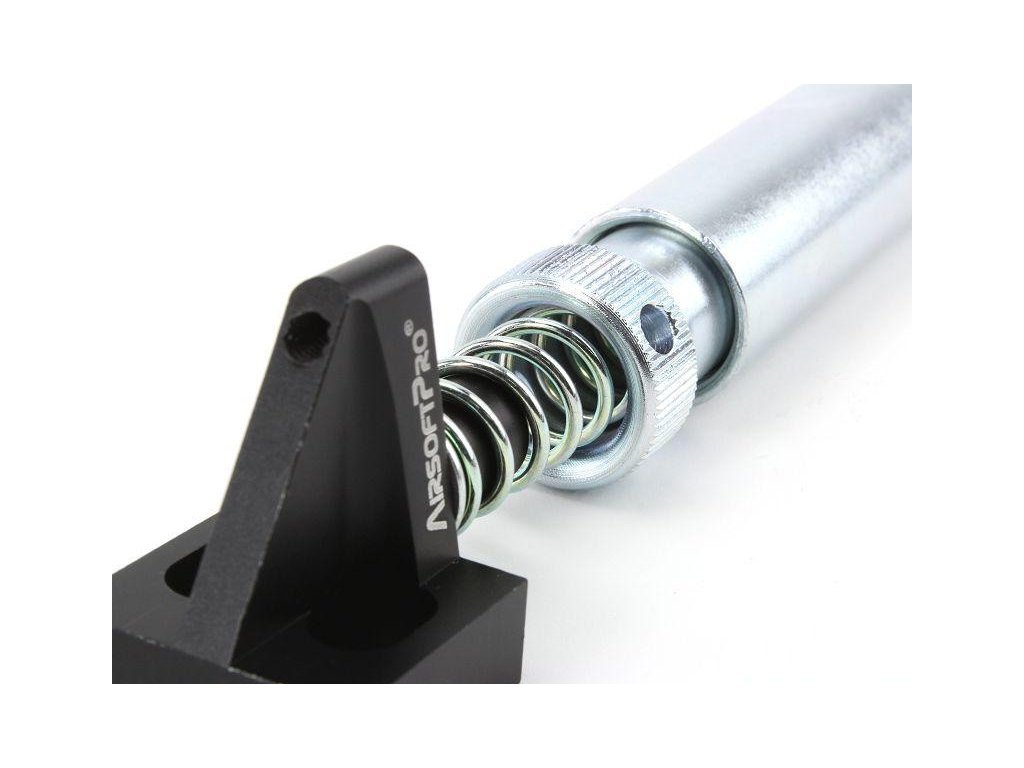 Silnější pružina lépe eliminuje rezonanci pístu ve válci a snižuje tak zvukový efekt krátké dávky.