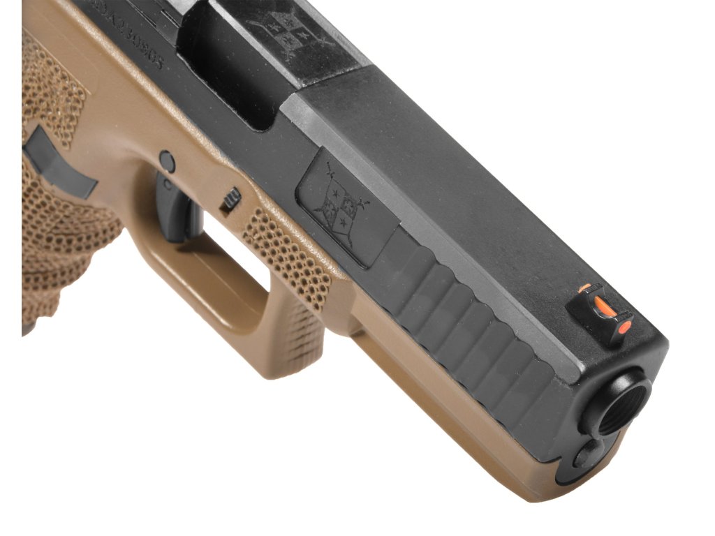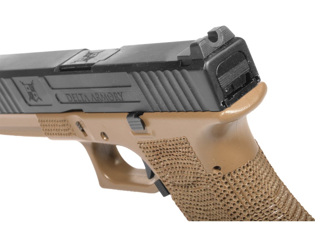 Zbraň má kovový závěr, který je obráběn na přesných CNC strojích. Tělo zbraně má přidané ručně vyráběné "stippling". Stippling je povrchová úprava. Slouží nejen k estetickému odlišení od ostatních, ale hlavně jako praktické zdrsnění rukojeti pro lepší manipulaci.