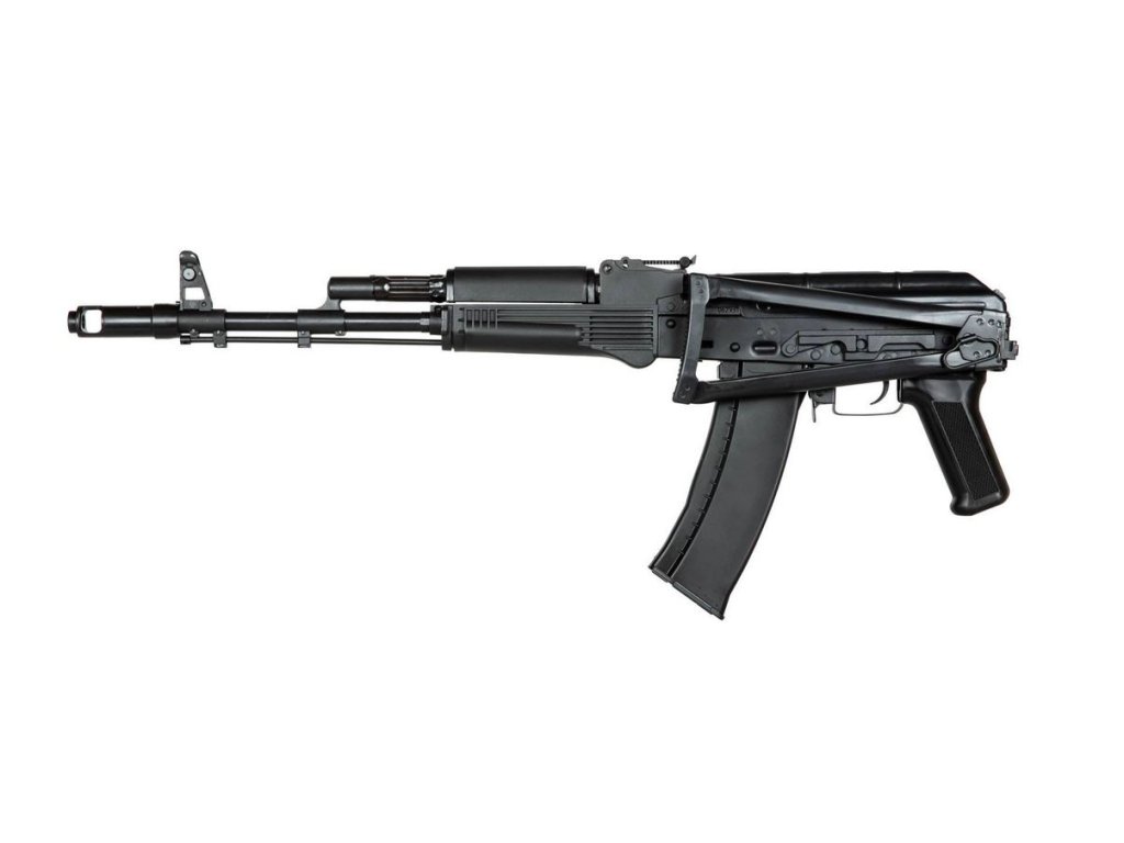 E a L AK-74S Essential se vyznačuje vysokou úrovní zpracování, kde všechny součásti jsou navrženy pro maximální odolnost. Konstrukce je zcela z oceli, bez použití ZnAl komponentů, což zajišťuje vysokou pevnost a dlouhou životnost. Zbraň je navíc opatřena oxidovanými ocelovými díly, které přispívají k autentičnosti vzhledu. Prakticky můžeme říci, že dostanete "vykuchané ostré AK s airsoftovými vnitřnostmi", samozřejmě s ohledem na konstrukční potřeby airsoftových zbraní jako vedení kabeláže, prostor pro motor a osa mechaboxu s komorou. Bezesporu se ale jedná o jednu z nejodolnějších airsoftových zbraní, kterou absolutně nelze porovnávat s levnějšími AK replikami jako CYMA nebo Specna Arms.Předpažbí a kryt plynové trubice..