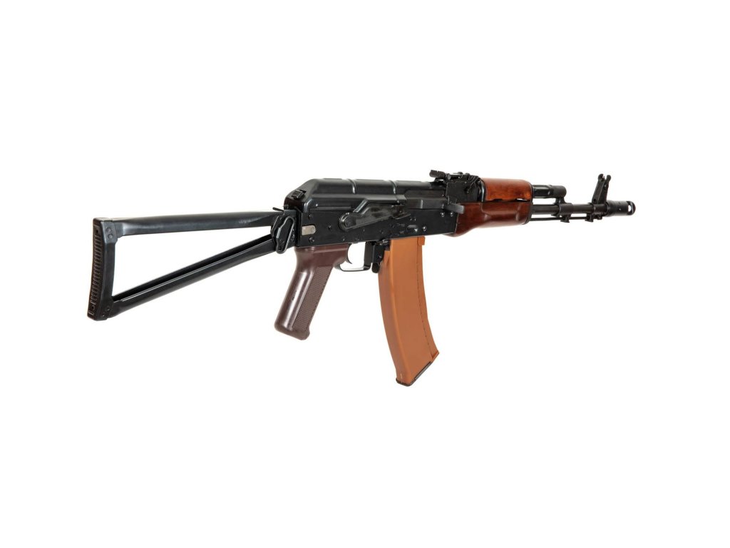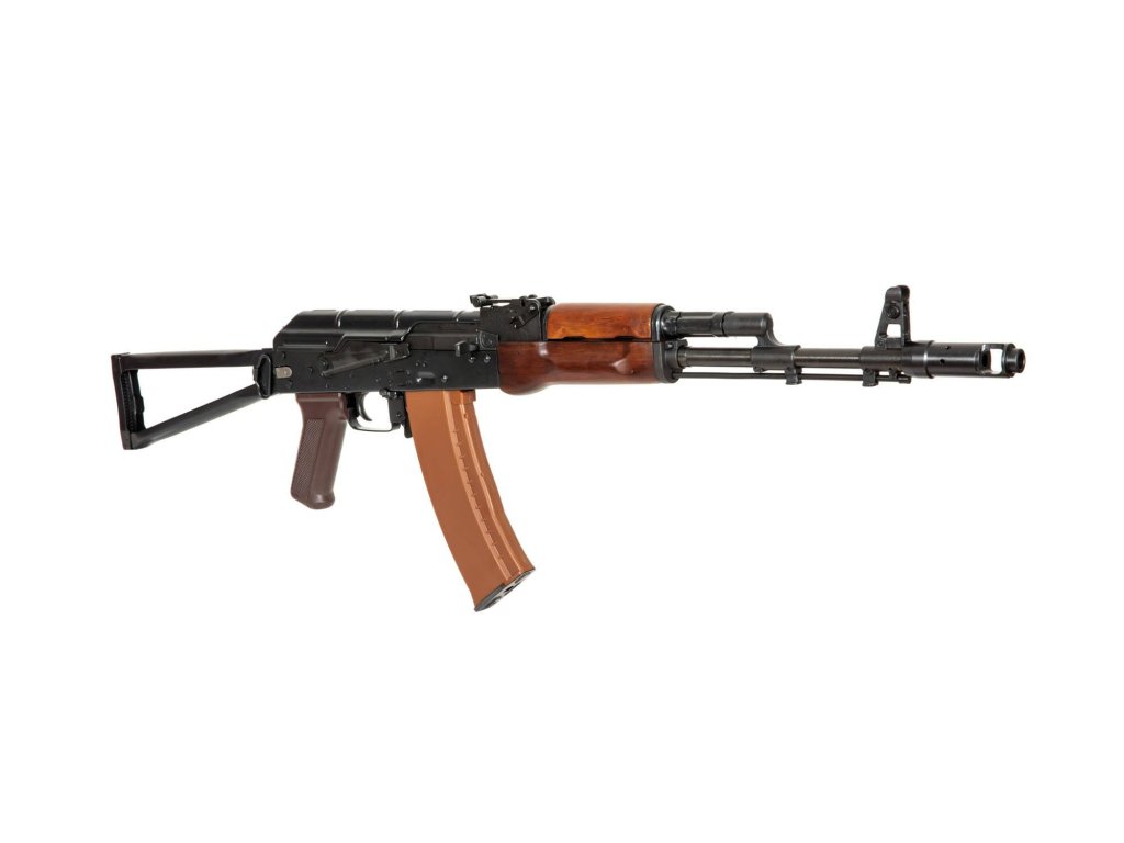 E a L AKS-74N Essential se vyznačuje vysokou úrovní zpracování, kde všechny součásti jsou navrženy pro maximální odolnost. Konstrukce je zcela z oceli, bez použití ZnAl komponentů, což zajišťuje vysokou pevnost a dlouhou životnost. Zbraň je navíc opatřena oxidovanými ocelovými díly, které přispívají k autentičnosti vzhledu. Prakticky můžeme říci, že dostanete "vykuchané ostré AK s airsoftovými vnitřnostmi", samozřejmě s ohledem na konstrukční potřeby airsoftových zbraní jako vedení kabeláže, prostor pro motor a osa mechaboxu s komorou. Bezesporu se ale jedná o jednu z nejodolnějších airsoftových zbraní, kterou absolutně nelze porovnávat s levnějšími AK replikami jako CYMA nebo Specna Arms.Předpažbí a kryt plynové trubic..