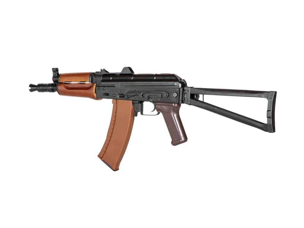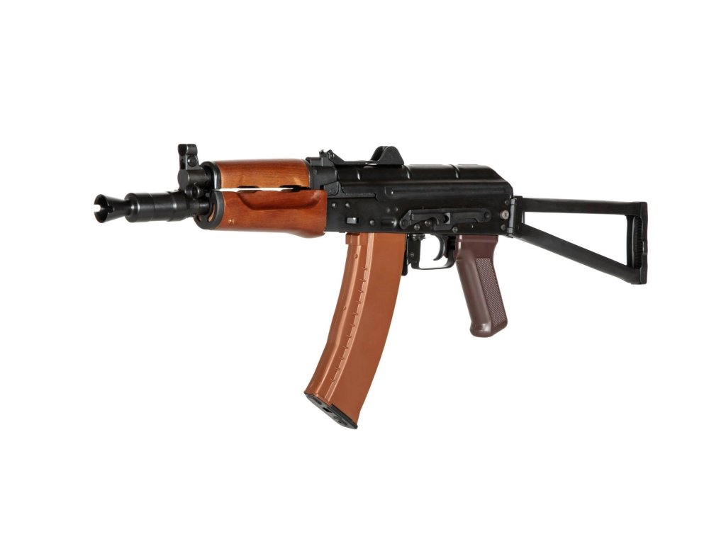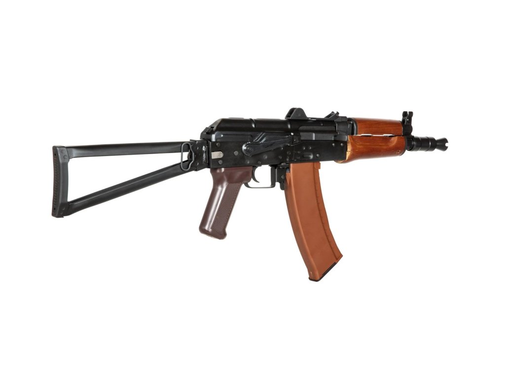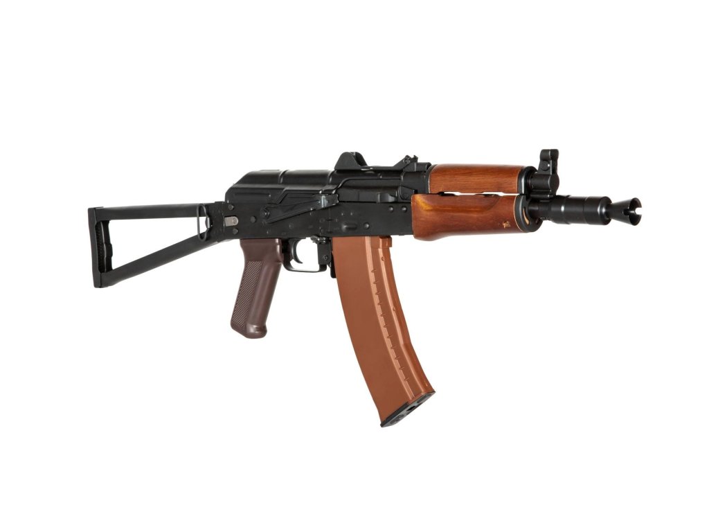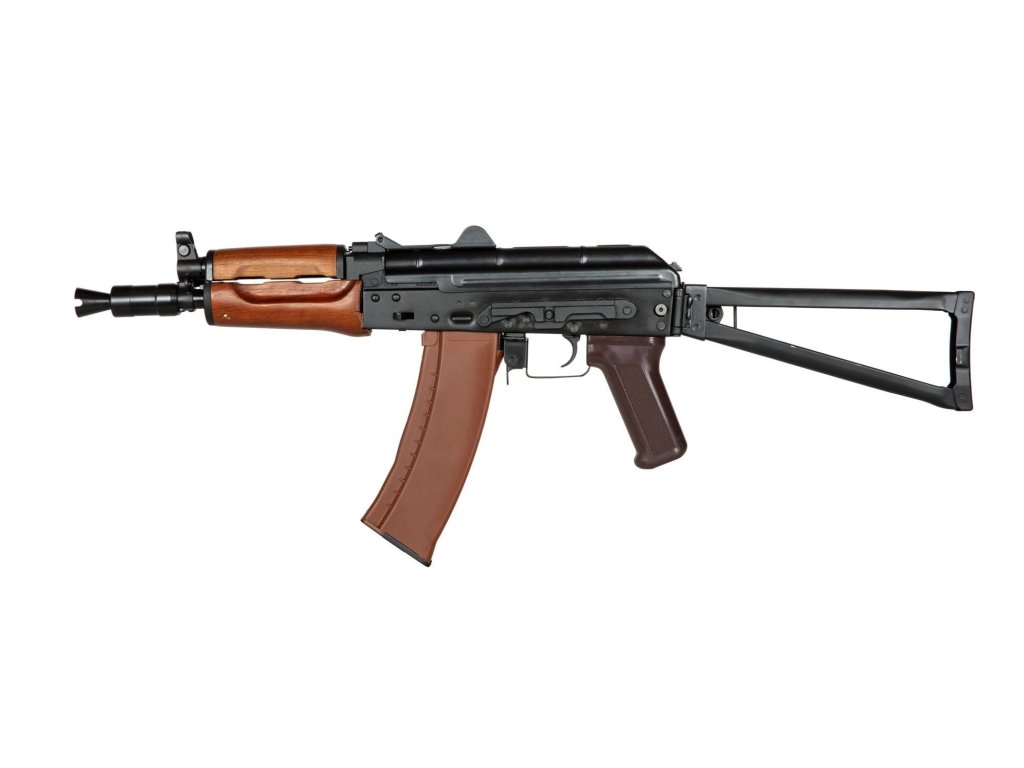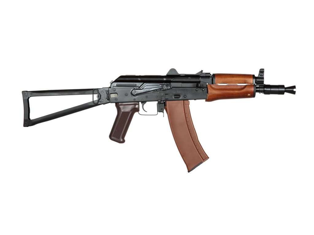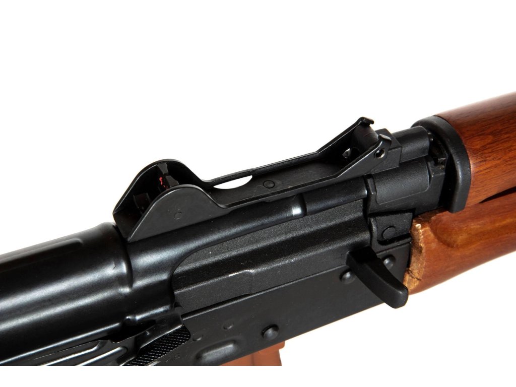 E a L AKS-74UN Essential se vyznačuje vysokou úrovní zpracování, kde všechny součásti jsou navrženy pro maximální odolnost. Konstrukce je zcela z oceli, bez použití ZnAl komponentů, což zajišťuje vysokou pevnost a dlouhou životnost. Zbraň je navíc opatřena oxidovanými ocelovými díly, které přispívají k autentičnosti vzhledu. Prakticky můžeme říci, že dostanete "vykuchané ostré AK s airsoftovými vnitřnostmi", samozřejmě s ohledem na konstrukční potřeby airsoftových zbraní jako vedení kabeláže, prostor pro motor a osa mechaboxu s komorou. Bezesporu se ale jedná o jednu z nejodolnějších airsoftových zbraní, kterou absolutně nelze porovnávat s levnějšími AK replikami jako CYMA nebo Specna Arms.Předpažbí a kryt plynové trubi..