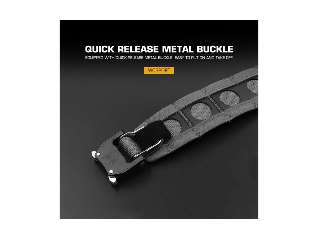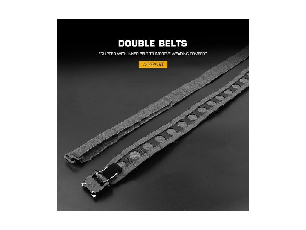 Taktická vnější dvouřadá vrstva umožňuje střelci připevnit širokou škálu pouzder a sumek kompatibilních s MOLLE vazbou. Opasek je vybaven kovovou rychlosponou a s připojeným “D-kroužkem”.