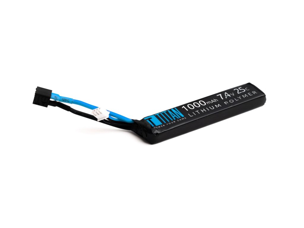 Mnoho uživatelů AEG preferuje Li-Pol baterie, protože mohou poskytnout lepší energetickou účinnost v menším balení. Většina baterií Li-Pol má přibližně stejnou velikost jako baterie typu Mini a svým výkonem se vyrovná velkým bateriím typu NiMH. Tyto kompaktní Li-Po baterie eliminují potřebu kapes na baterie, bateriových boxů nebo velkých baterií nevzhledně připevněných k menším zbraním.Li-Pol baterie TITAN je vybavena špičkovými články, které zajišťují stabilní a vysoký výkon pro vaši airsoftovou zbraň.Díky nim bude mít vaše zbraň vyšší kadenci, lepší odezvu spouště a hlavně bude střílet déle (a to i v chladném počasí!)