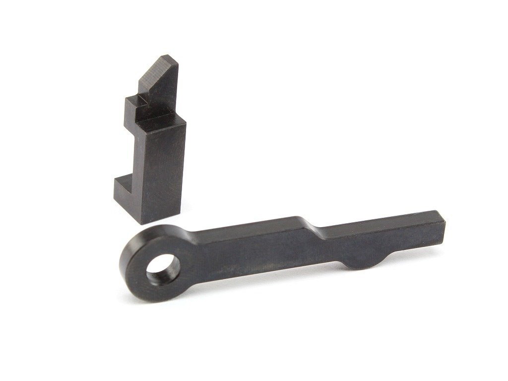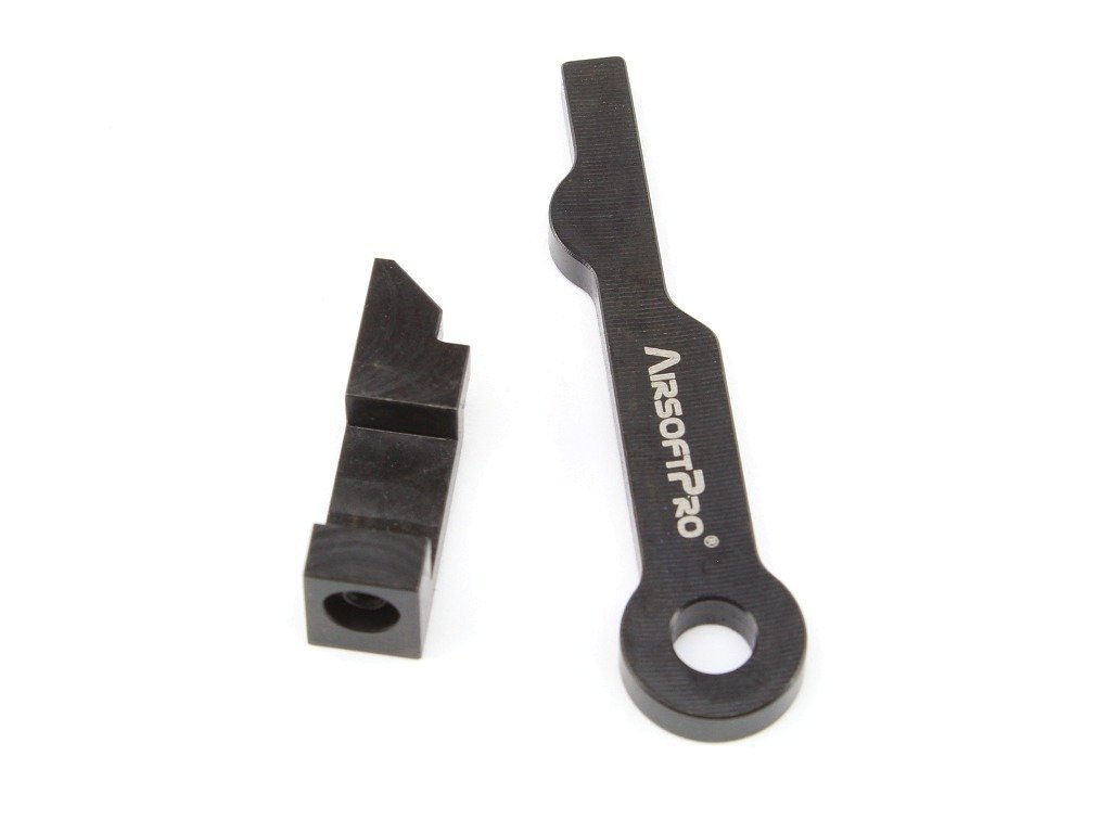 Upgrade díly pro spoušťový mechanismus manuální odstřelovací pušky Ares Amoeba Striker AS-02. Balení obsahuje páku a záchyt pístu. Oba díly jsou ocelové a kalené HRC48-55°. Záchyt má ve své dolní části regulační šroub. S jeho pomocí lze nastavovat chod spouště.