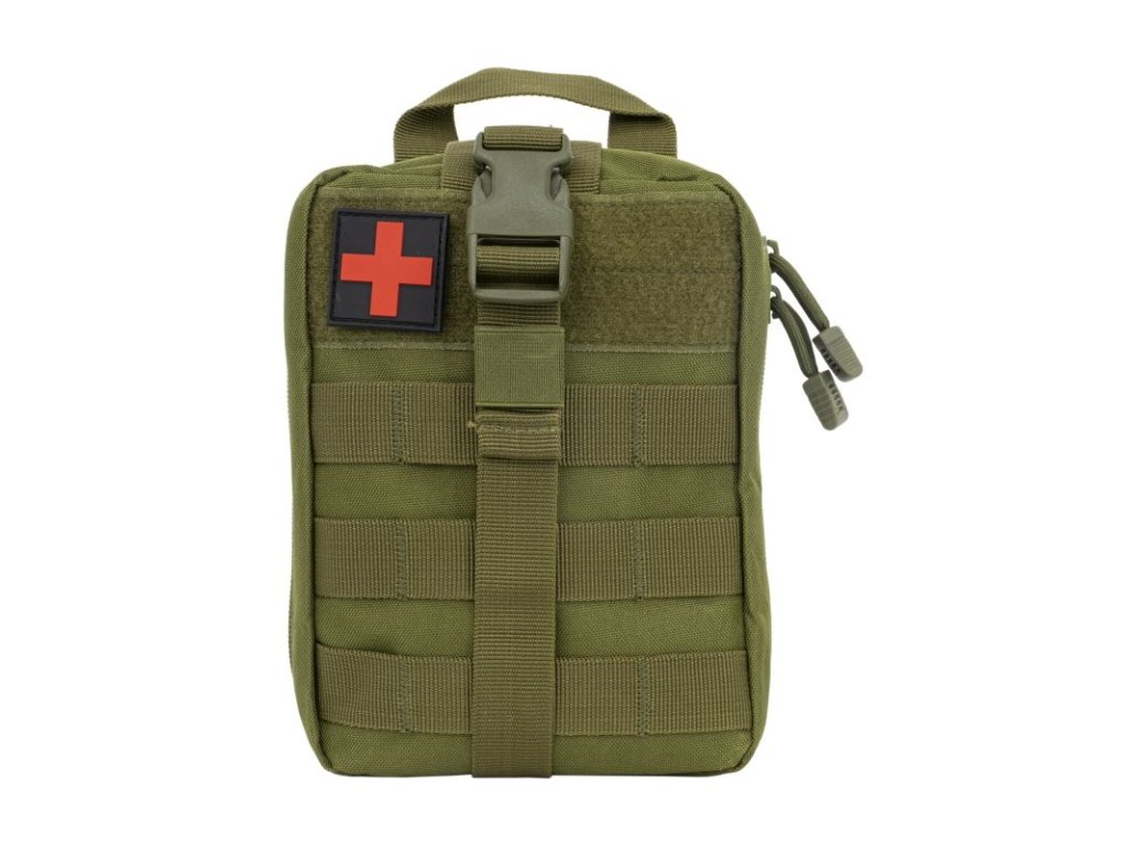 Pouzdro je vybaveno zipem. Uvnitř je organizér pro všechny potřebné věci, jako jsou: obvazy, nůžky atd., které nejsou součástí balení. Vnitřní stěna je vybavena dvěma plochými kapsami, z nichž jedna je upevněna páskou se suchým zipem. Jedna z kapes má popruh vyrobený z elastického materiálu - vynikající pro přenášení obvazů, pera nebo chemického světla. Vnější stěna je vybavena ještě další plochou kapsou, dalším popruhem z elastického materiálu a plochou síťovanou kapsou na zip.