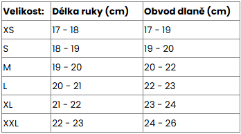 Tabulka velikostí: