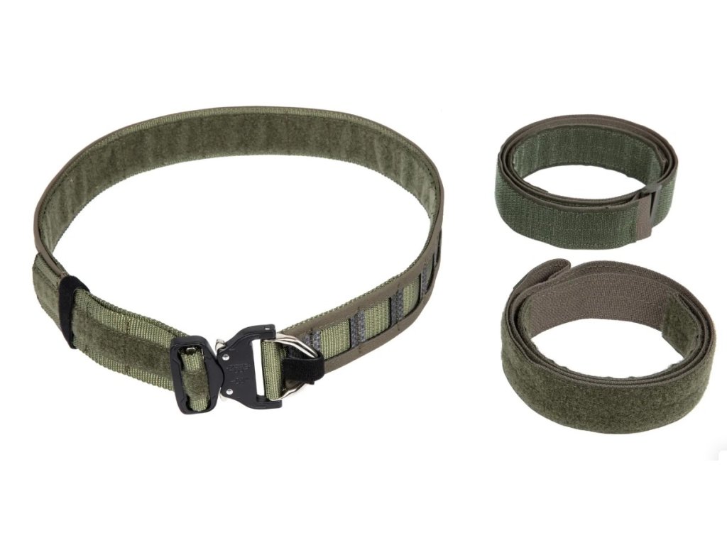 Třídílný vojenský opasek vybavený 20 otvory v systému Molle. Zapíná se sponou typu Cobra pro rychlé sejmutí.