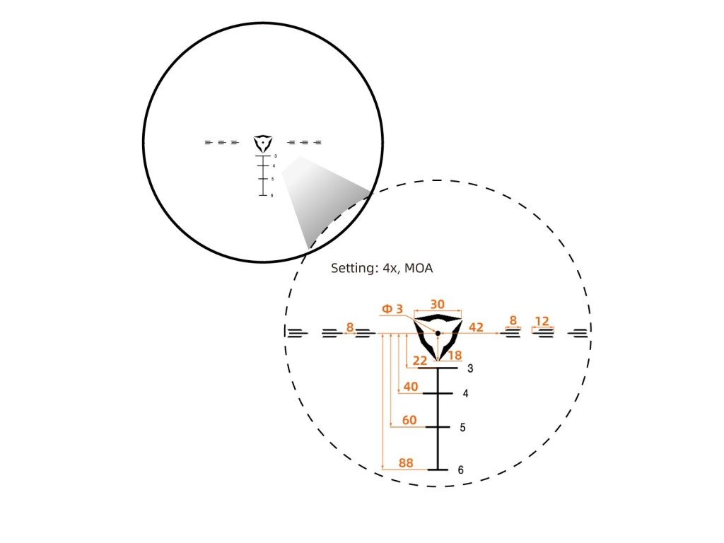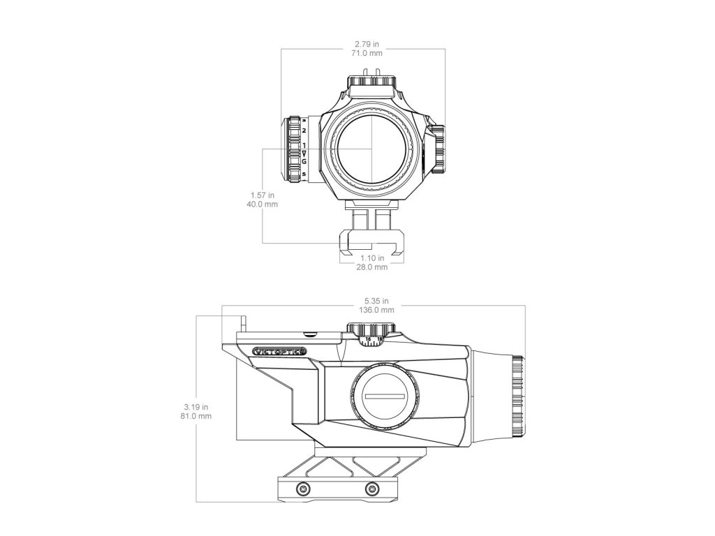 VictOptics C1 4x32 je kompaktní a odolný prizmatický zaměřovač (využívá hranol místo čoček), který je ideální pro platformy AR15 využívající ráži .223 / 5.56. Samozřejmě jej můžete použít na slabší ráže, vzduchovky a všechny typy airsoftových zbraní. Leptaný BDC záměrný kříž v optickém hranolu poskytuje přehlednou balistickou kompenzaci a možnost odhadu vzdálenosti. Systém červeného a zeleného podsvícení v 5 úrovních zajišťuje čitelnost záměrného bodu za jakýchkoliv světelných podmínek, čili budete stejně jistě mířit na přímém slunci, za šera nebo uvnitř budov. Horní strana zaměřovače umožňuje instalaci mikro kolimátoru s footprintem TEK, MOJ nebo MGT (montážní destička je odnímatelná a obsahuje pevná mířidla). Optika je plně-vícevrstvě-potažená (FMC) se zorným polem 13 metrů na 100 metrů. Odolný hliníkový tubus je plněný dusíkem, takže se nezamlží ani při prudké změně teploty. Pogumovaný plášť dodává tomuto zaměřovači výjimečnou odolnost.